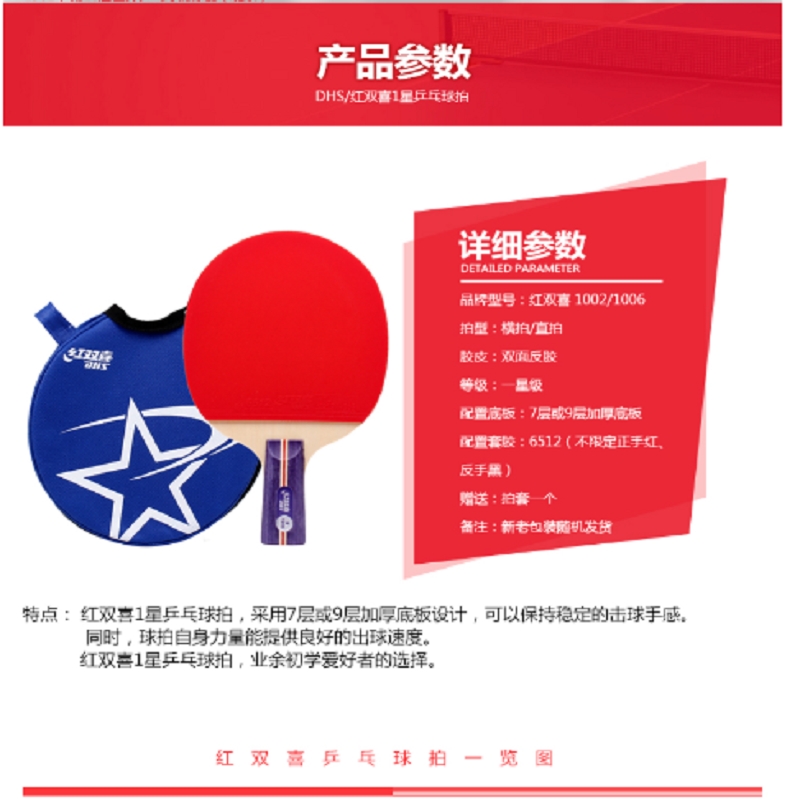 紅雙喜橫拍乒乓球拍 T1002